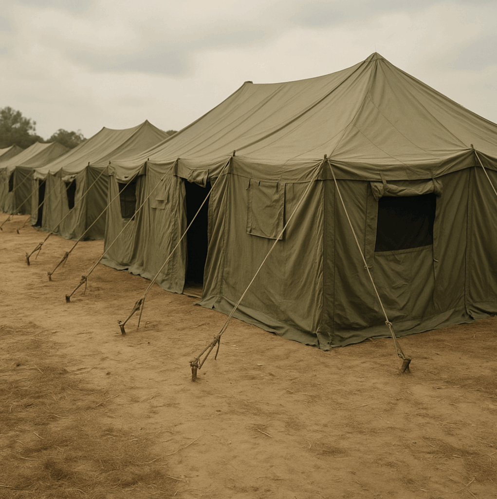 • Emergency Shelters and Protective Tents: Rapid-deploy shelters offering cover and protection for troops in forward operating environments.